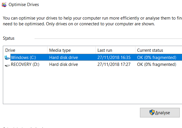 - Wenn Sie eine Festplatte besitzen, können Sie die Defragmentierung mit folgendem Befehl starten: 'dfrgui'