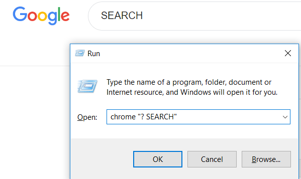 Möchten Sie schnell etwas bei Google suchen, ohne einen Browser öffnen zu müssen? Das geht, indem Sie das Ausführen-Dialogfeld öffnen und Folgendes eingeben: ... Chrome „? SUCHE“Ersetzen Sie einfach das Wort SUCHEN durch den Suchbegriff, den Sie bei Google eingeben möchten.