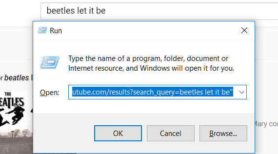 Sie können schnell auf YouTube suchen, indem Sie das Wiedergabefeld öffnen und Folgendes eingeben: chrome “youtube.com/results?search_query=SEARCH” Ersetzen Sie SEARCH durch den Suchbegriff, nach dem Sie suchen möchten, und chrome durch Ihren bevorzugten Browser.